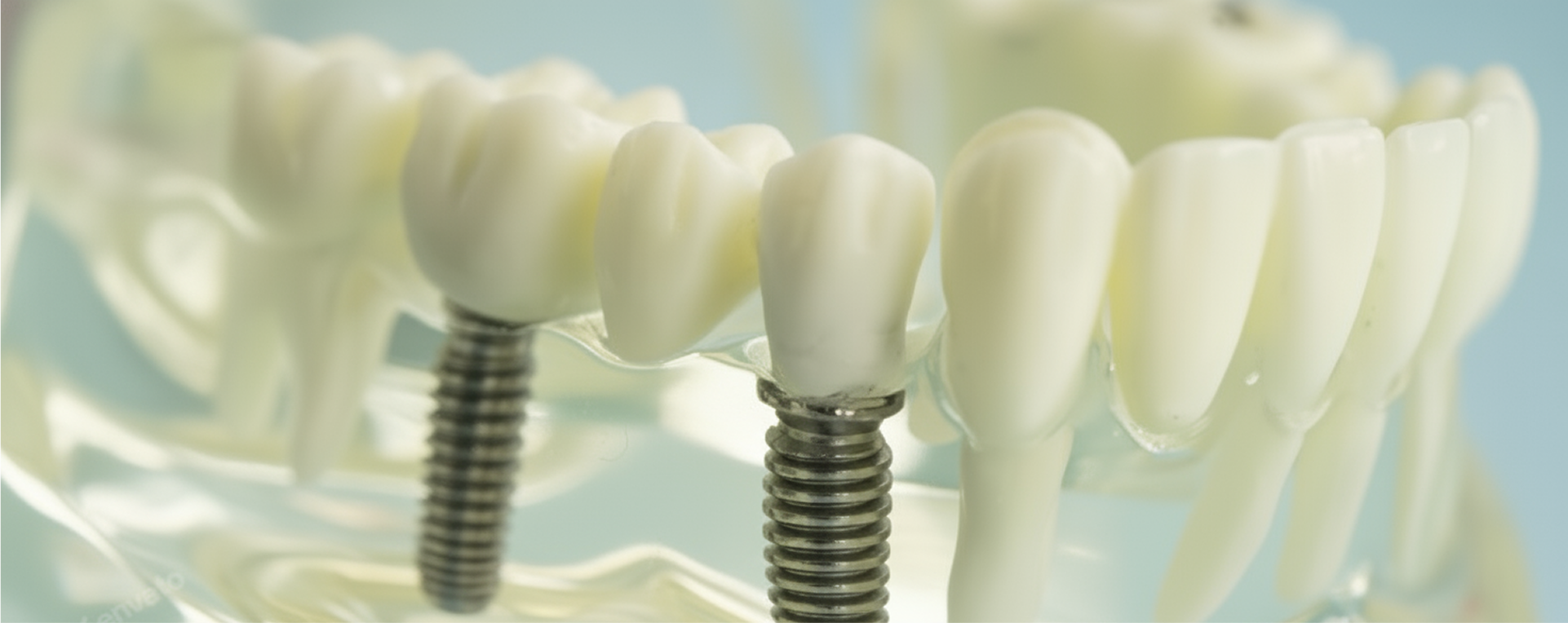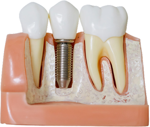 Trata-se de um pino de titânio inserido cirurgicamente no osso (maxilar ou mandíbula) para substituir a raiz de um dente perdido. Sobre esse pino, após a cicatrização, o dentista instala uma coroa (dente artificial), restaurando a função mastigatória e a estética do sorriso.